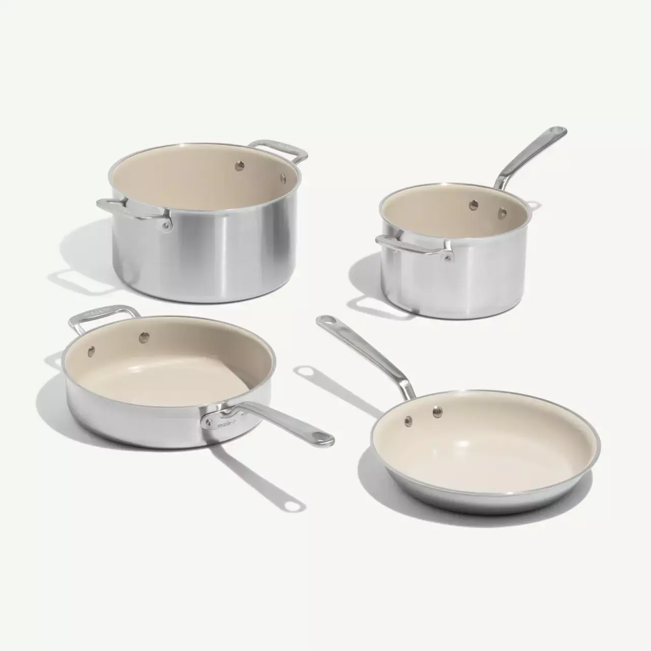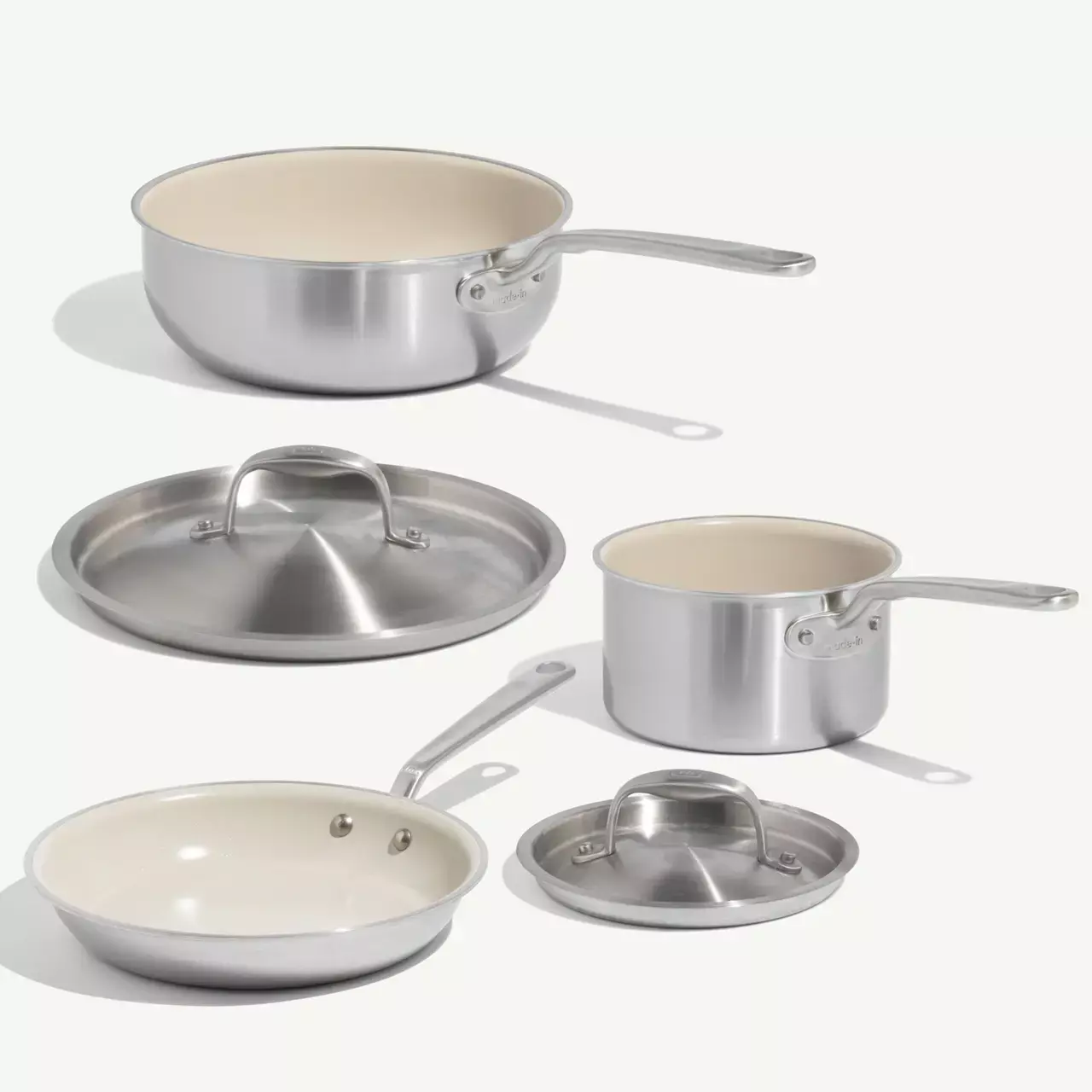 5-Ply cookware refers to stainless steel constructed from five different layers. We use this as the base of our CeramiClad™ pans to ensure excellent heat conduction and even heating across the surface.