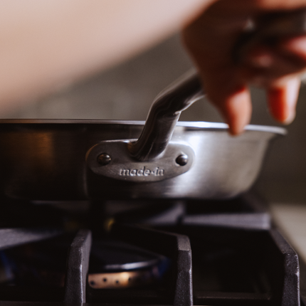 Engineered for Michelin-starred kitchens, our Stainless Clad features stainless steel rivets and 5-ply strength built to outlast trends and become an heirloom.