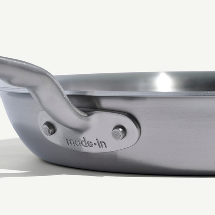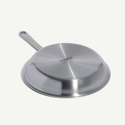 Meet a true kitchen workhorse. Crafted in Italy and the USA from 5 layers of metal, the Stainless Clad Frying Pan delivers a durable, easy-to-clean cooking surface with superior heat conduction and distribution.