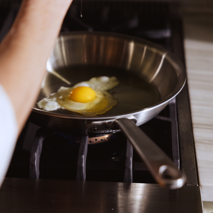 With proper heat control, stainless steel delivers non-stick performance naturally. Our 5-ply construction heats evenly, reducing hot spots and sticking.